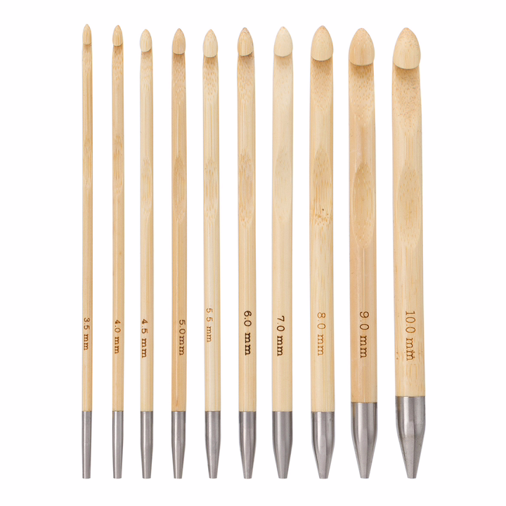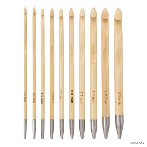 На каждый крючок для вязания нанесена маркировка с указанием размера: 3,5 мм, 4 мм, 4,5 мм, 5 мм, 5,5 мм, 6 мм, 7мм, 8 мм, 9 мм и 10 мм.