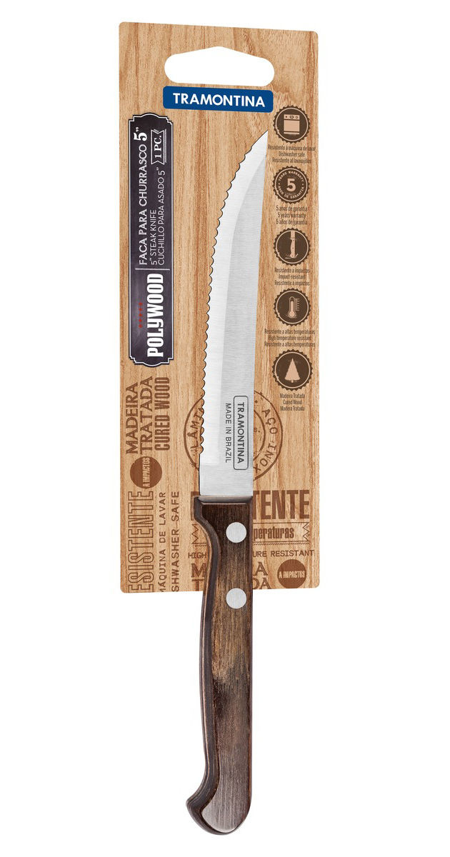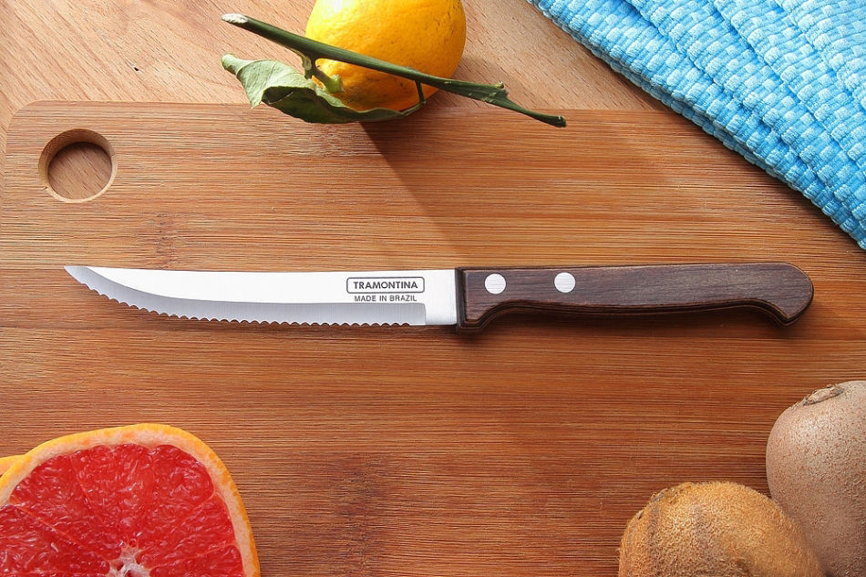 Нож для стейка изготовлен из высококачественной нержавеющей стали. Оригинальная и практичная рукоятка выполнена из дерева. Этот нож идеально нарежет не только стейк, но и другие мясные продукты. Он займет достойное место на вашей кухне.