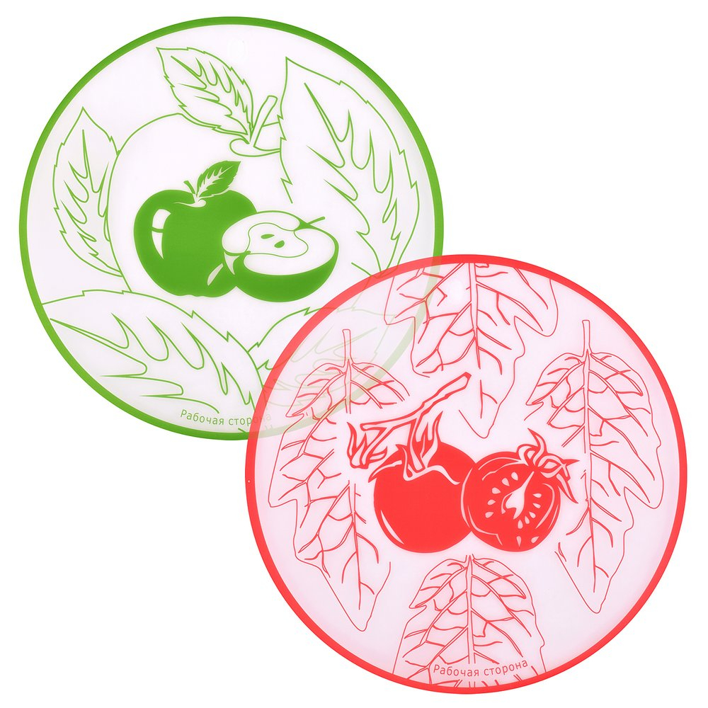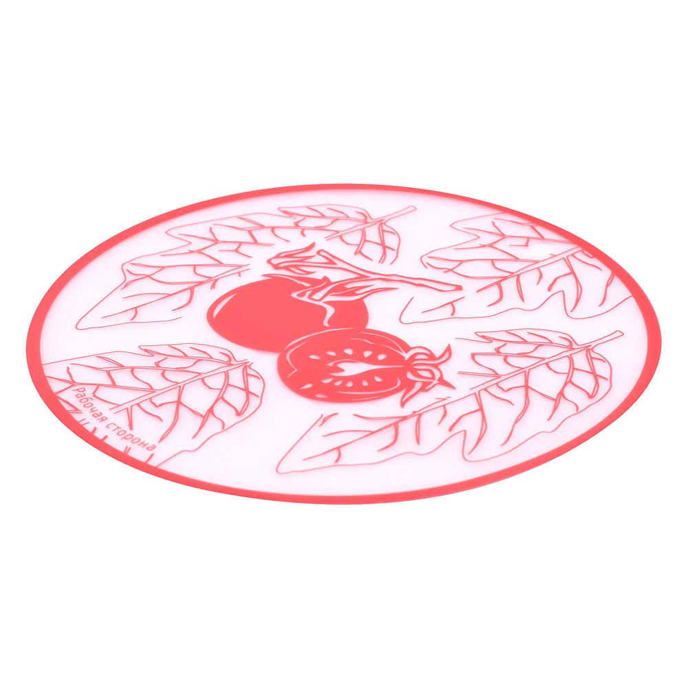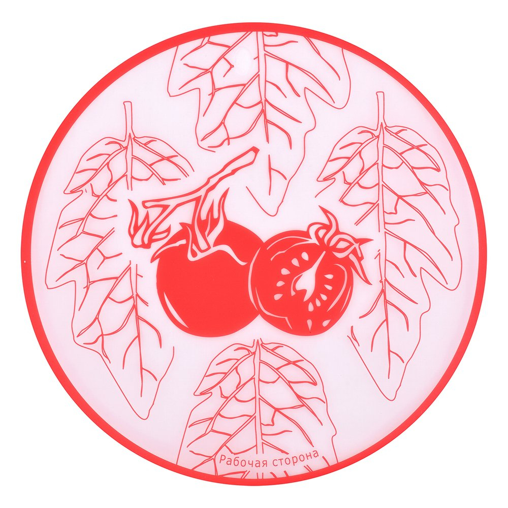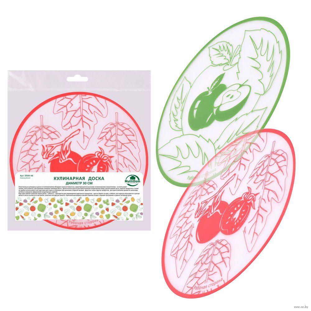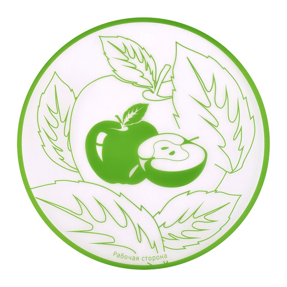 Такая доска может использоваться не только для нарезки, на ней удобно раскатывать тесто, использовать в качестве подложки во время украшения пирожных и тортов. Диаметр изделия 30 см. Изготовлено из пластмассы (полипропилен). После использования тщательно вымойте с моющими средствами.