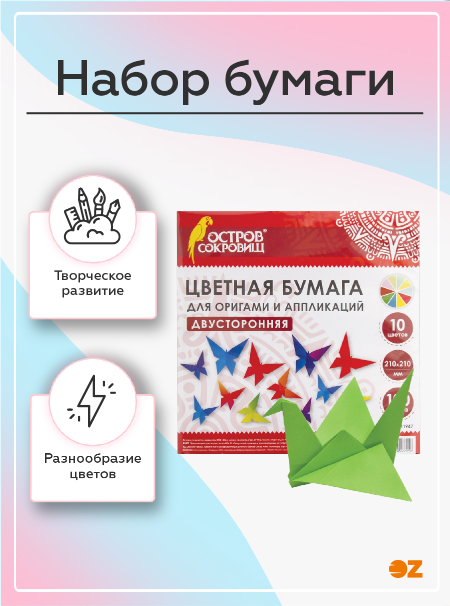Бумага для оригами и аппликаций предназначена для создания оригинальных поделок в технике оригами. Способствует развитию фантазии, творческих способностей, усидчивости.