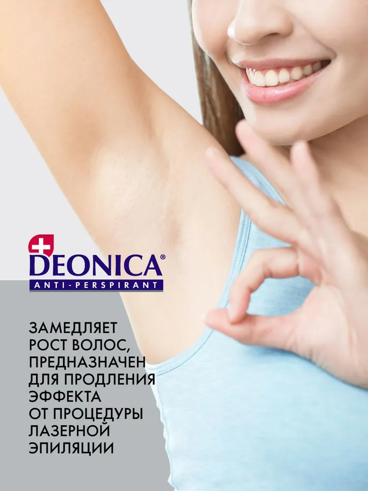 После применения дезодоранта на протяжении месяца благодаря растительному комплексу, входящему в состав, новые волоски начинают расти медленнее и становятся тоньше.