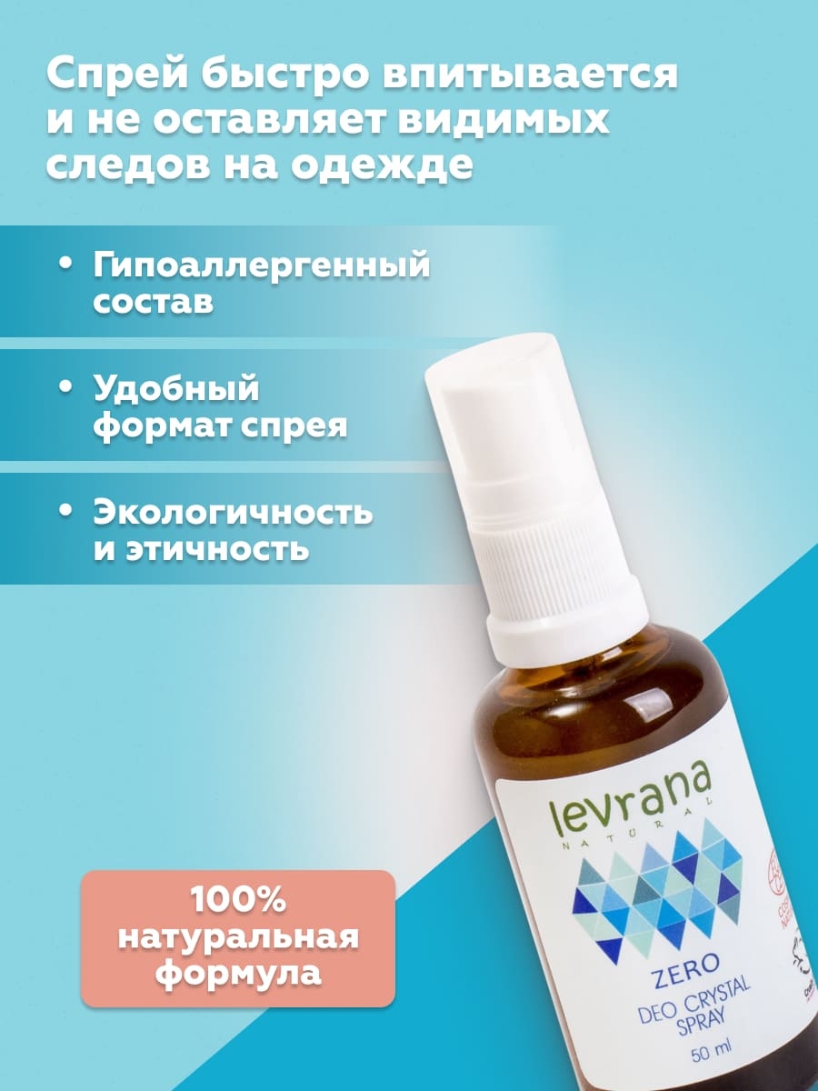 Натуральный дезодорант "Zero" эффективно нейтрализует запах пота, не блокируя при этом потовые железы.