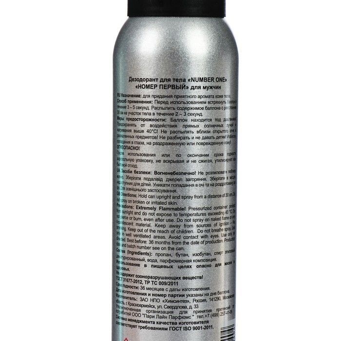 Дезодорант Number One справляется с неприятными запахами и регулирует потоотделение. Он эффективно работает в течение всего дня и дарит приятное ощущение свежести. Входящие в состав средства уникальные компоненты придадут телу приятный аромат, от которого противоположный пол будет в восторге.