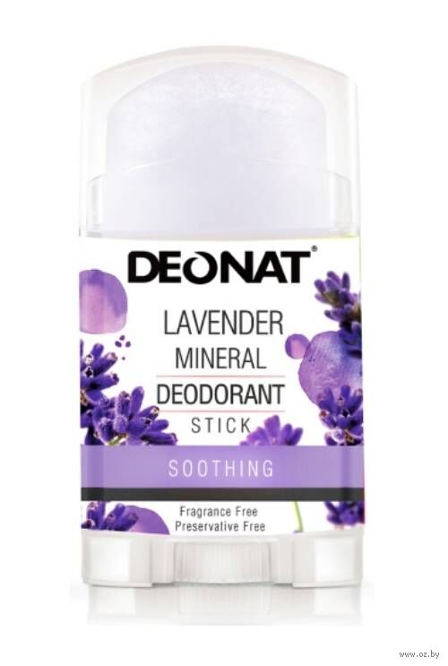 Кристалл "Деонат" с экстрактом лаванды. Яркий футляр, лёгкий фиолетовый стик, без запаха, вывинчивающийся (twist-up).