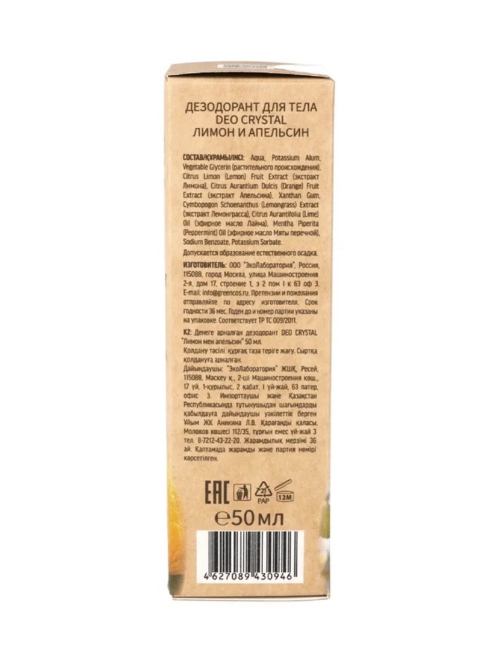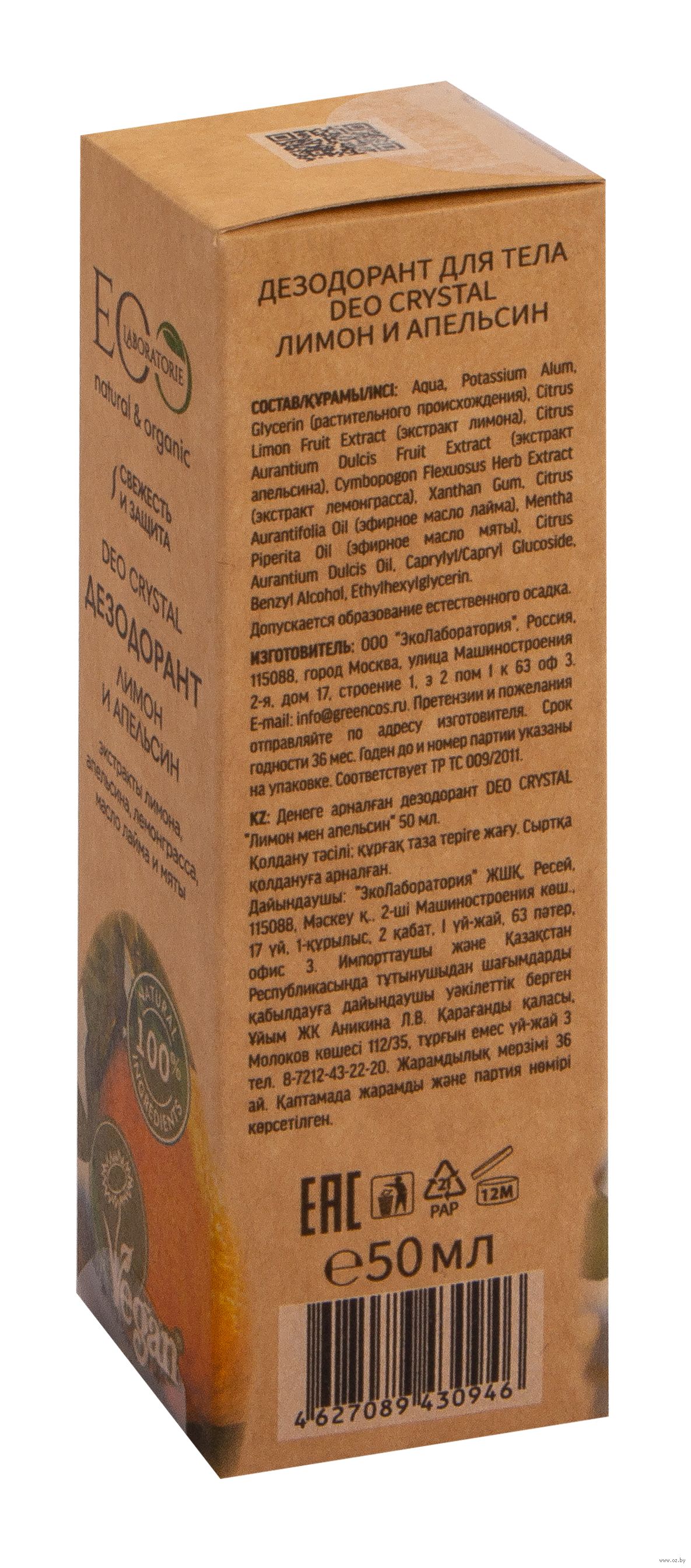 100% – натуральный дезодорант на основе алюмо-калиевых квасцов, снижает секрецию потовых желез и обладает приятным ароматом.