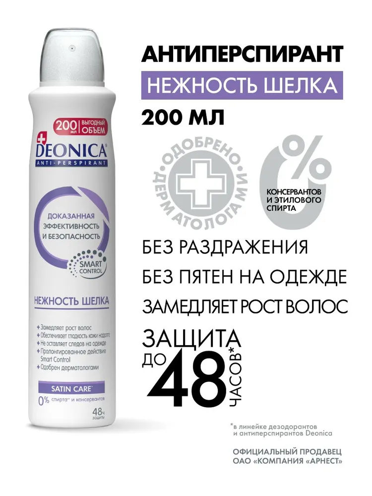 Дезодорант-антиперспирант "Нежность шёлка" обеспечивает защиту и свежесть до 48 часов и не оставляет следов на одежде.