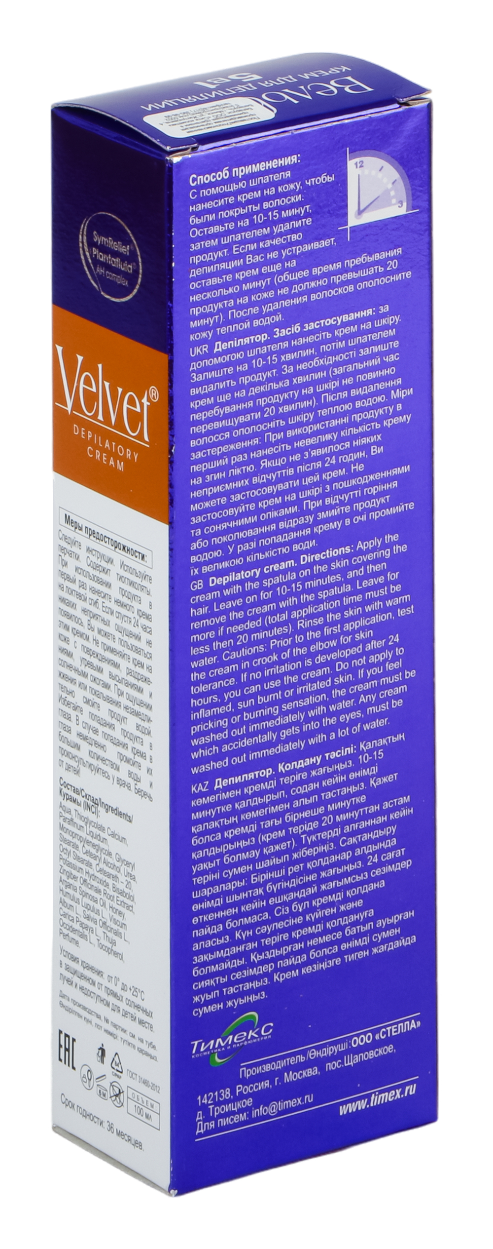 С помощью шпателя нанесите крем на кожу, чтобы были покрыты волоски. Оставьте на 10-15, затем шпателем удалите продукт. Если качество депиляции вас не устраивает, оставьте крем еще на несколько минут (общее время пребывания продукта на коже не должно превышать 20 минут). После удаления волосков ополосните кожу теплой водой.Состав