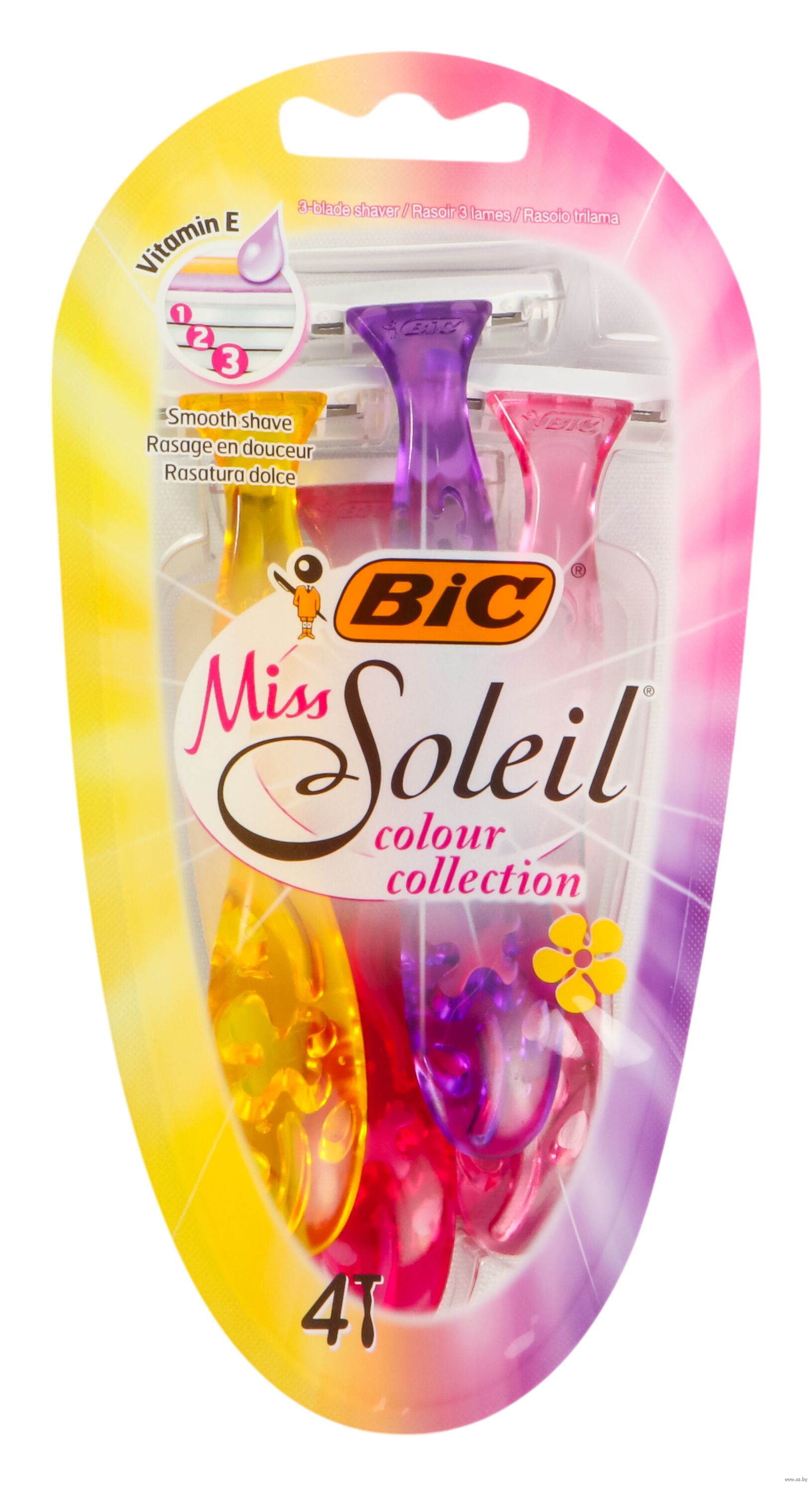 Бритва BIC Miss Soleil Colour Collection – прекрасный выбор для женщин, которые хотят добиться комфортного и гладкого бритья. Благодаря увлажняющей полоске с витамином Е вы можете рассчитывать на легкое скольжение и максимально комфортный процесс бриться.