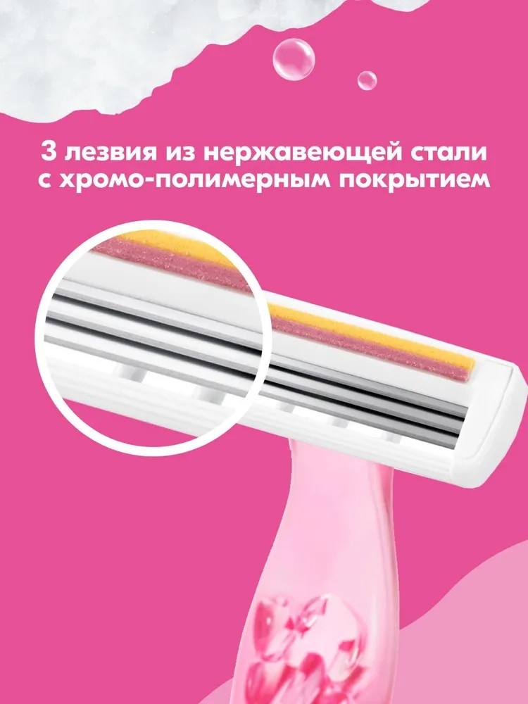 Фиксированная головка с тремя лезвиями из высококачественной нержавеющей стали и увлажняющей полоской позволяет добиваться безупречной гладкости. Удобная ручка, разработанная специально для женщин, помогает эффективно контролировать бритье. Этот станок справится, даже если вы ищете бритву для бикини: каждая мелочь продумана в нем для бритья и удаления волос на самых сложных участках.