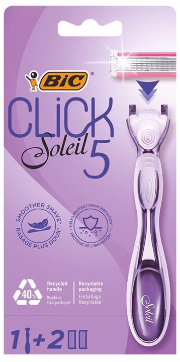 Защита от раздражения: увлажняющая полоска с алоэ вера, плавающая головка и прорезиненная ручка. Материал ручки на 40% изготовлен из переработанного пластика.