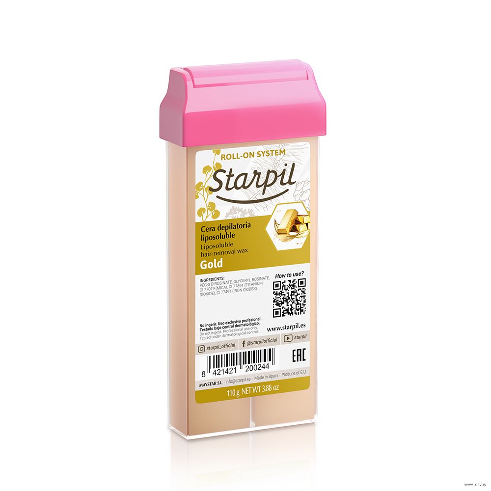 Прозрачный воск (с радужными пигментами) от бренда Starpil – Золотой в картридже. Подходит для всех типов волос и кожи, особенно для средних и коротких волос.