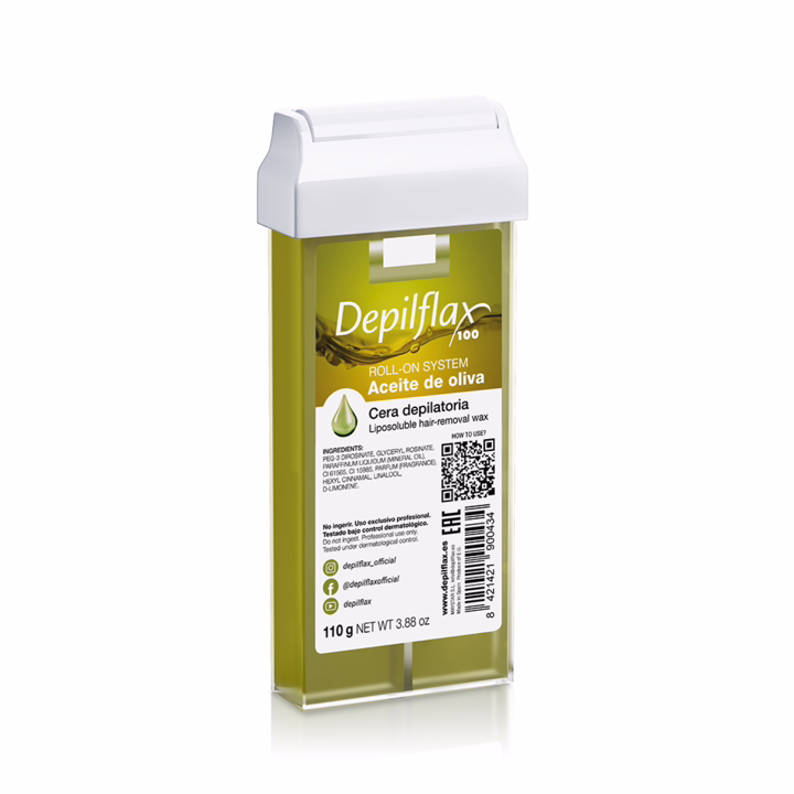 Прозрачный универсальный воск от бренда Depilflax100 – Оливковый в картридже. Подходит для тонких и длинных волос.