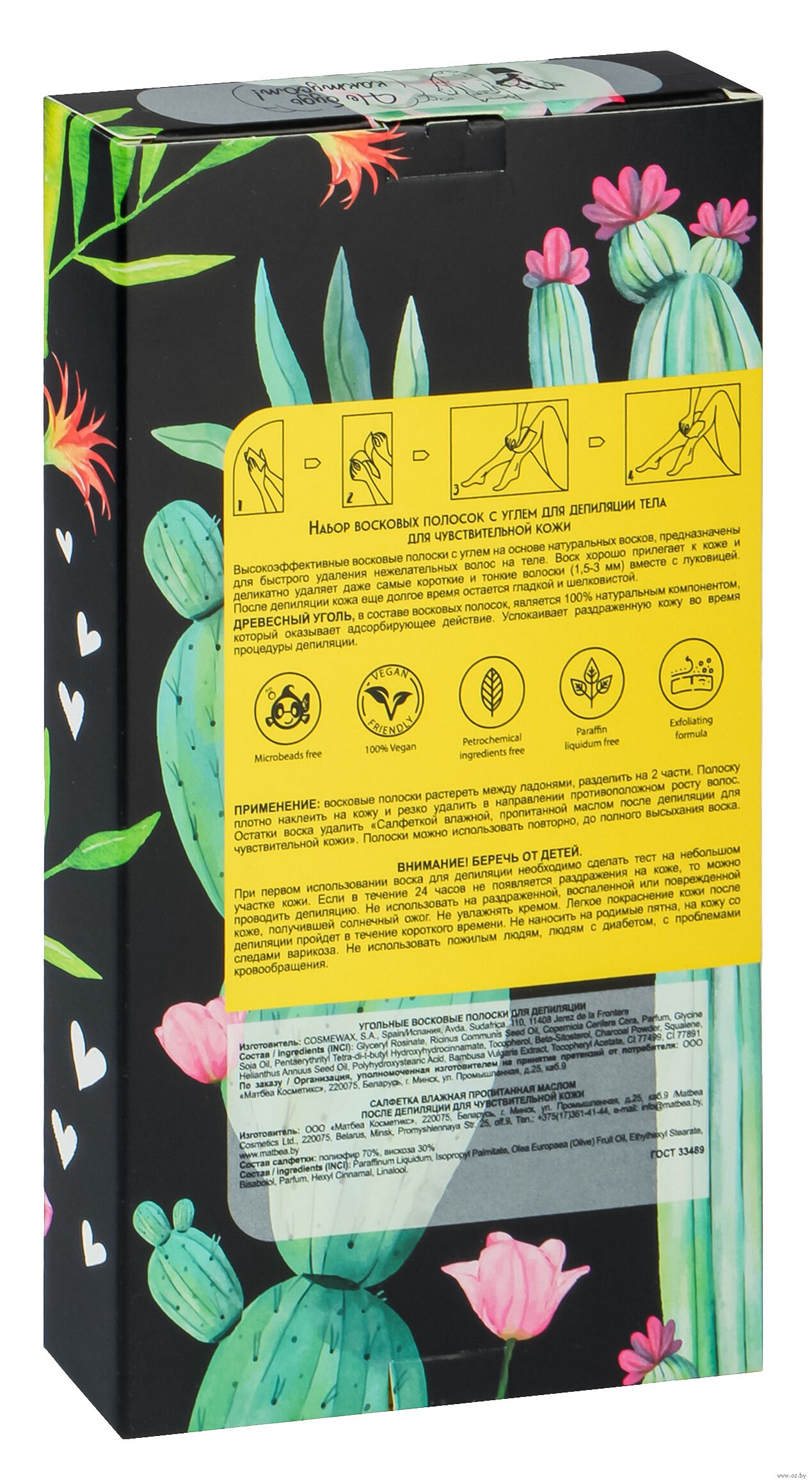 Высокоэффективные восковые полоски с углем на основе натуральных восков предназначены для быстрого удаления нежелательных волос на теле.