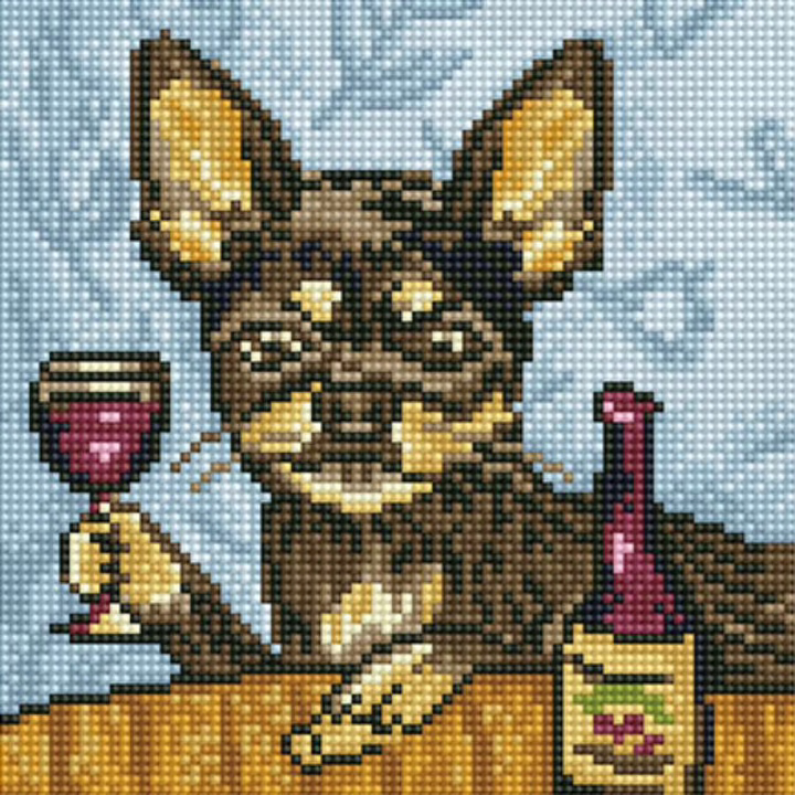 На холст с деревянным подрамником нанесена схема с отметками для выкладки стразов соответствующих цветов, а также нанесен специальный клеевой слой. Необходимо с помощью пластиковой ручки-стилуса захватить определенный страз и перенести на область, отмеченную под выбранный цвет. В наборе имеется все, что нужно для создания шедевра своими руками.