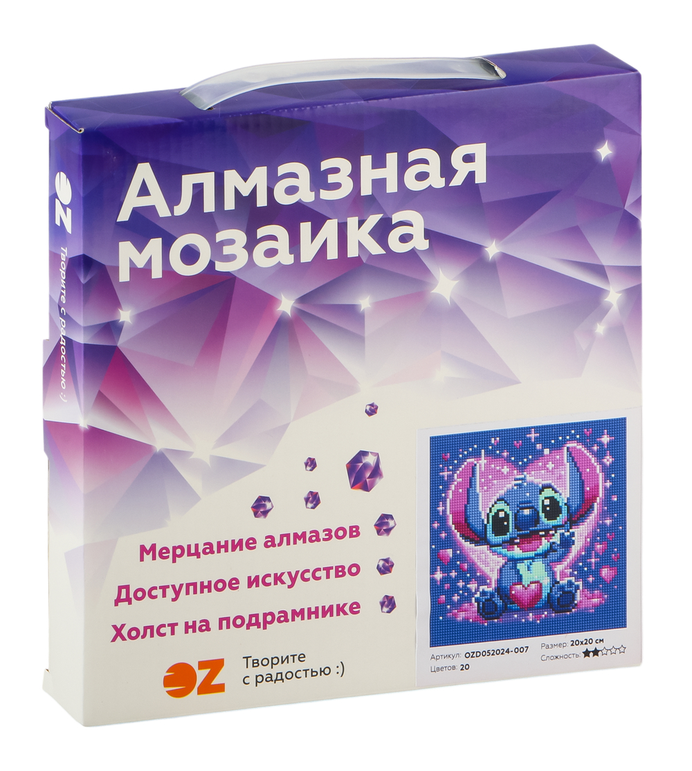 Алмазная вышивка-мозаика "Стич в сердечке" (200х200 мм)
