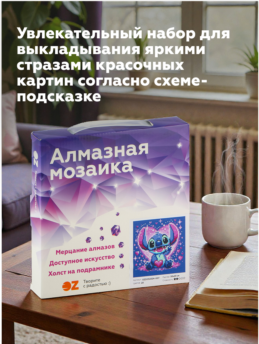 Самоклеящаяся мозаика или "Алмазная вышивка" не только проста в изготовлении, но и в использовании. Детали-алмазики не теряют своей яркости. При загрязнении картинку можно протереть влажной тканью.
