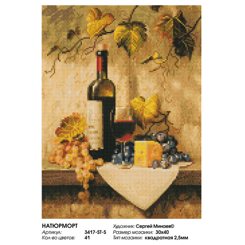 Гастрономические натюрморты в алмазной мозаике – это яркие блестящие картины, которые придадут интересный акцент любому интерьеру. Для наилучшего результата сюжет специально доработан дизайнером и разложен на оптимальное количество цветов.
