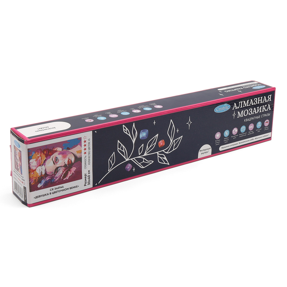 Алмазная мозаика Cristyle "Девушка в цветочном венке" – это возможность скрасить досуг, добавить в интерьер новую деталь или сделать подарок близкому человеку. Чтобы выложить весь сюжет, потребуются время и аккуратность, но результат того стоит! Готовая картина из цветных страз притягивает внимание и ярко мерцает при любом освещении.