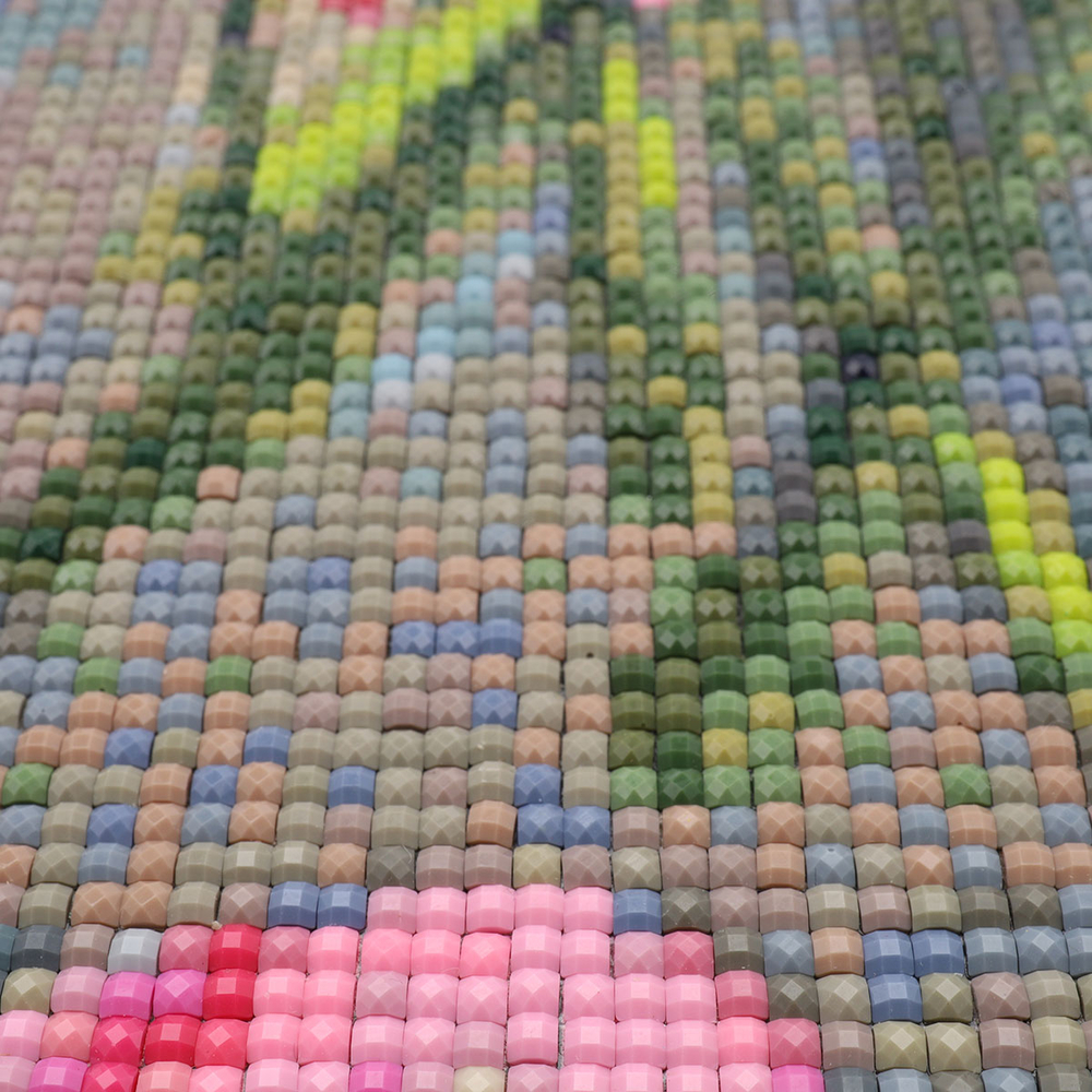 Квадратные стразы имеют 9 граней и 2 вида огранки, что придает мозаике дополнительный блеск и глубину.