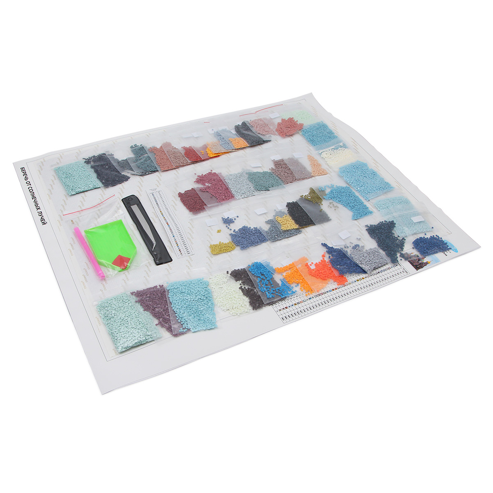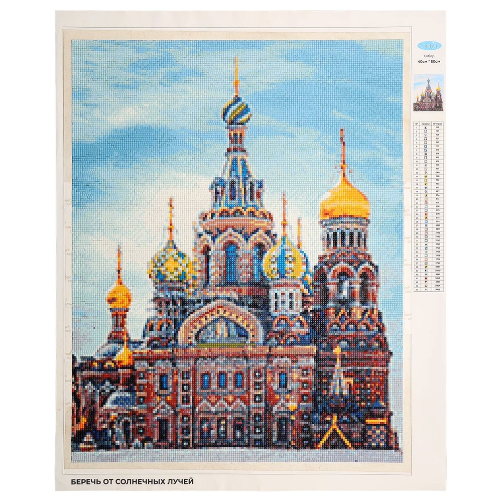 Схема выкладки тщательно проработана, с учетом палитры DMC, поэтому цвета и детали переданы максимально точно. Расшифровка схемы находится прямо на холсте – это поможет быстро подобрать стразы нужного цвета и найти участок, где они будут располагаться. Качественный клеевой слой надежно удерживает стразы на полотне.