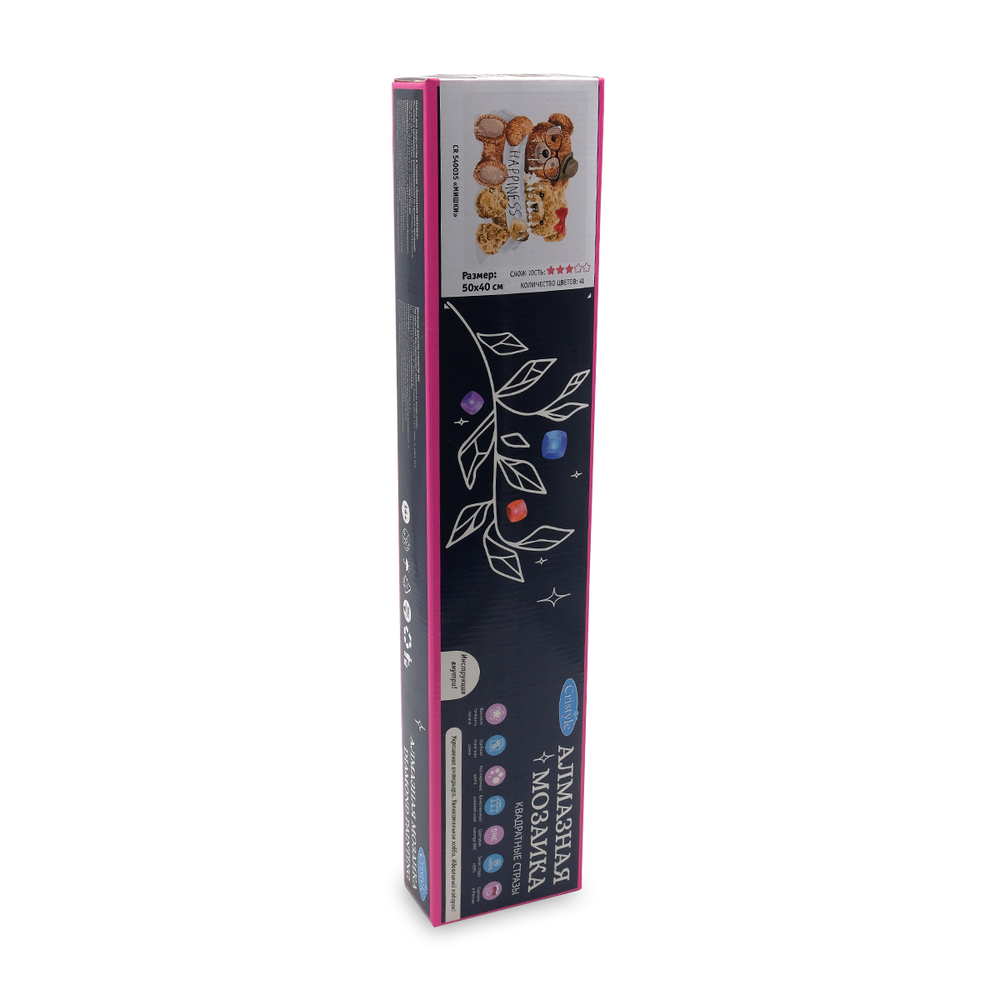 Схема выкладки тщательно проработана, с учетом палитры DMC, поэтому цвета и детали переданы максимально точно. Расшифровка схемы находится прямо на холсте – это поможет быстро подобрать стразы нужного цвета и найти участок, где они будут располагаться. Качественный клеевой слой надежно удерживает стразы на полотне.