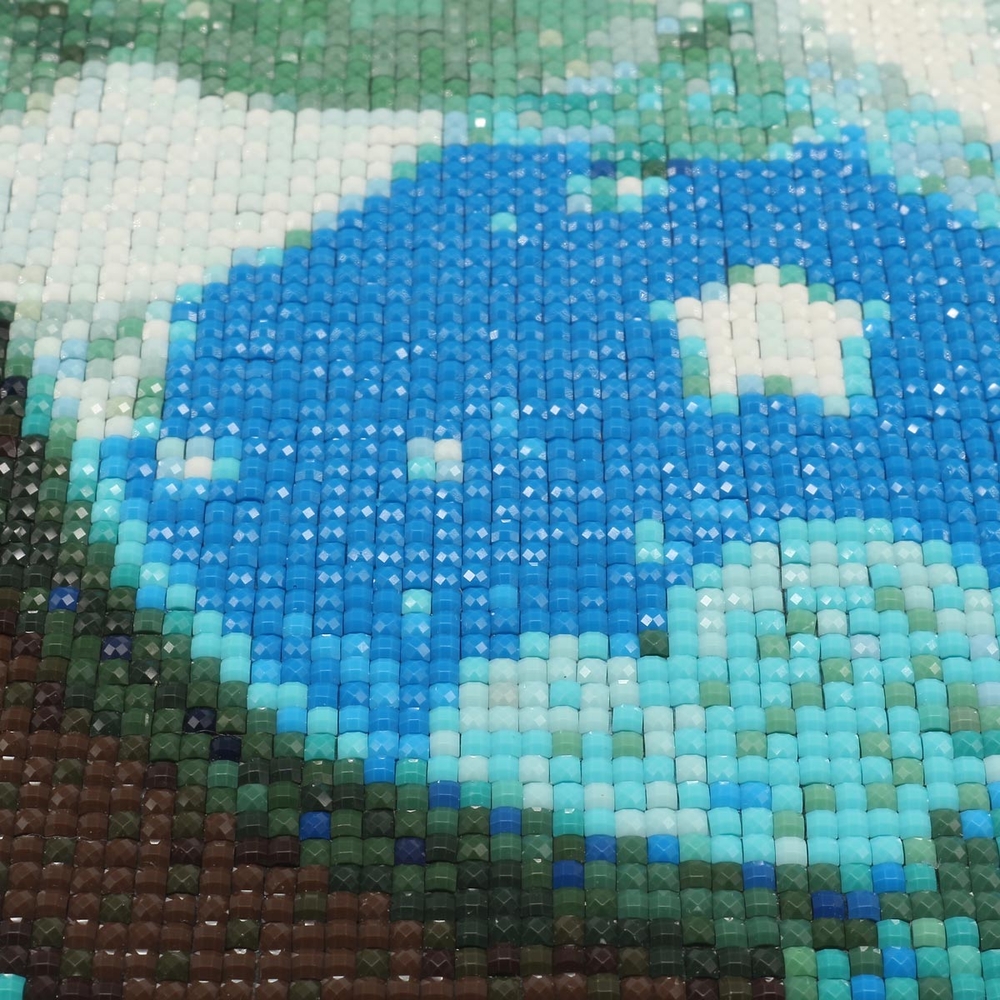 Квадратные стразы имеют 9 граней и 2 вида огранки, что придает мозаике дополнительный блеск и глубину.