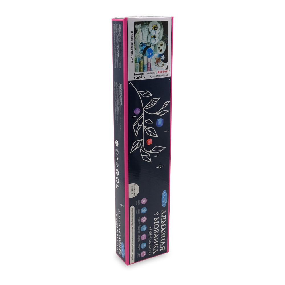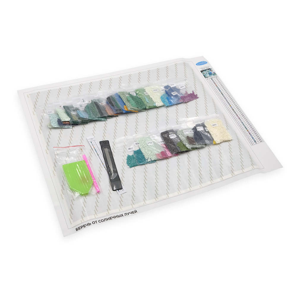 Схема выкладки тщательно проработана, с учетом палитры DMC, поэтому цвета и детали переданы максимально точно. Расшифровка схемы находится прямо на холсте – это поможет быстро подобрать стразы нужного цвета и найти участок, где они будут располагаться. Качественный клеевой слой надежно удерживает стразы на полотне.