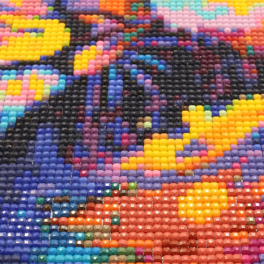 Квадратные стразы имеют 9 граней и 2 вида огранки, что придает мозаике дополнительный блеск и глубину.