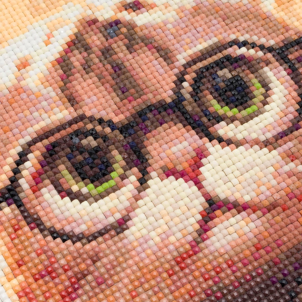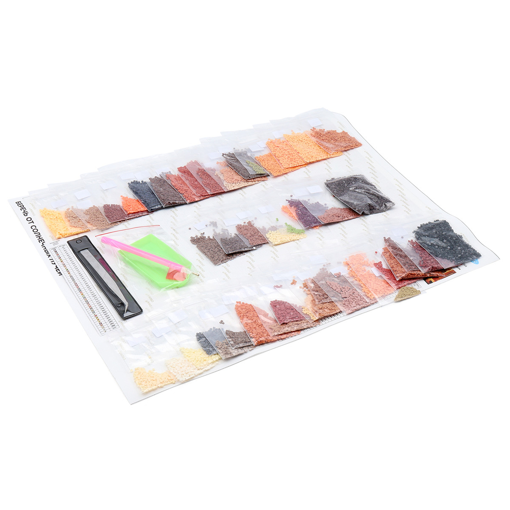 Схема выкладки сделана с учетом палитры DMC, максимально точно передает цвета и детали. Расшифровка схемы находится на холсте: так вы быстрее подберете стразы нужного цвета и легко найдете участок, где они будут располагаться. Клеевой слой надежно удерживает стразы на полотне.