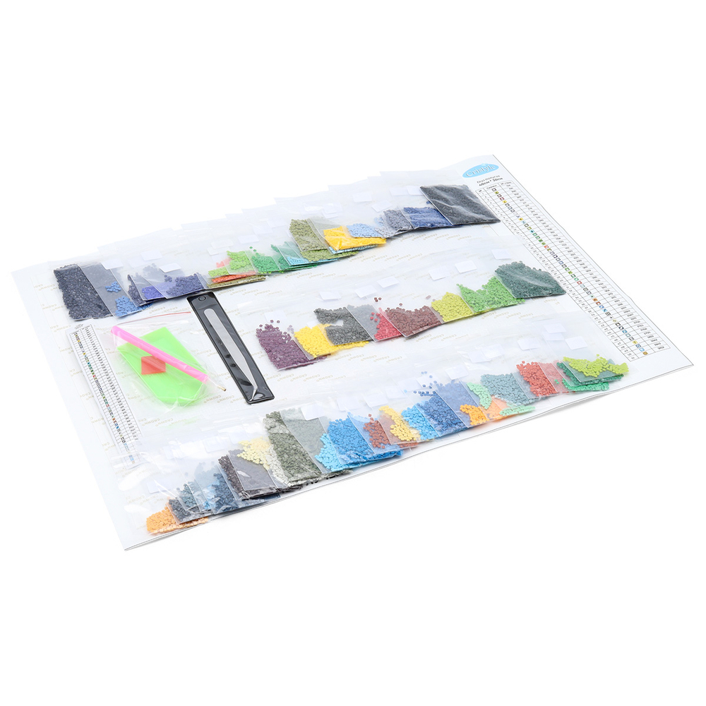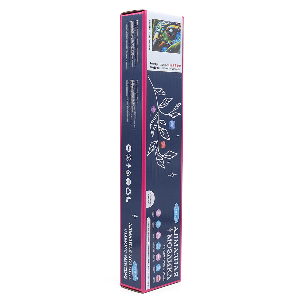 Схема выкладки сделана с учетом палитры DMC, максимально точно передает цвета и детали. Расшифровка схемы находится на холсте: так вы быстрее подберете стразы нужного цвета и легко найдете участок, где они будут располагаться. Клеевой слой надежно удерживает стразы на полотне.