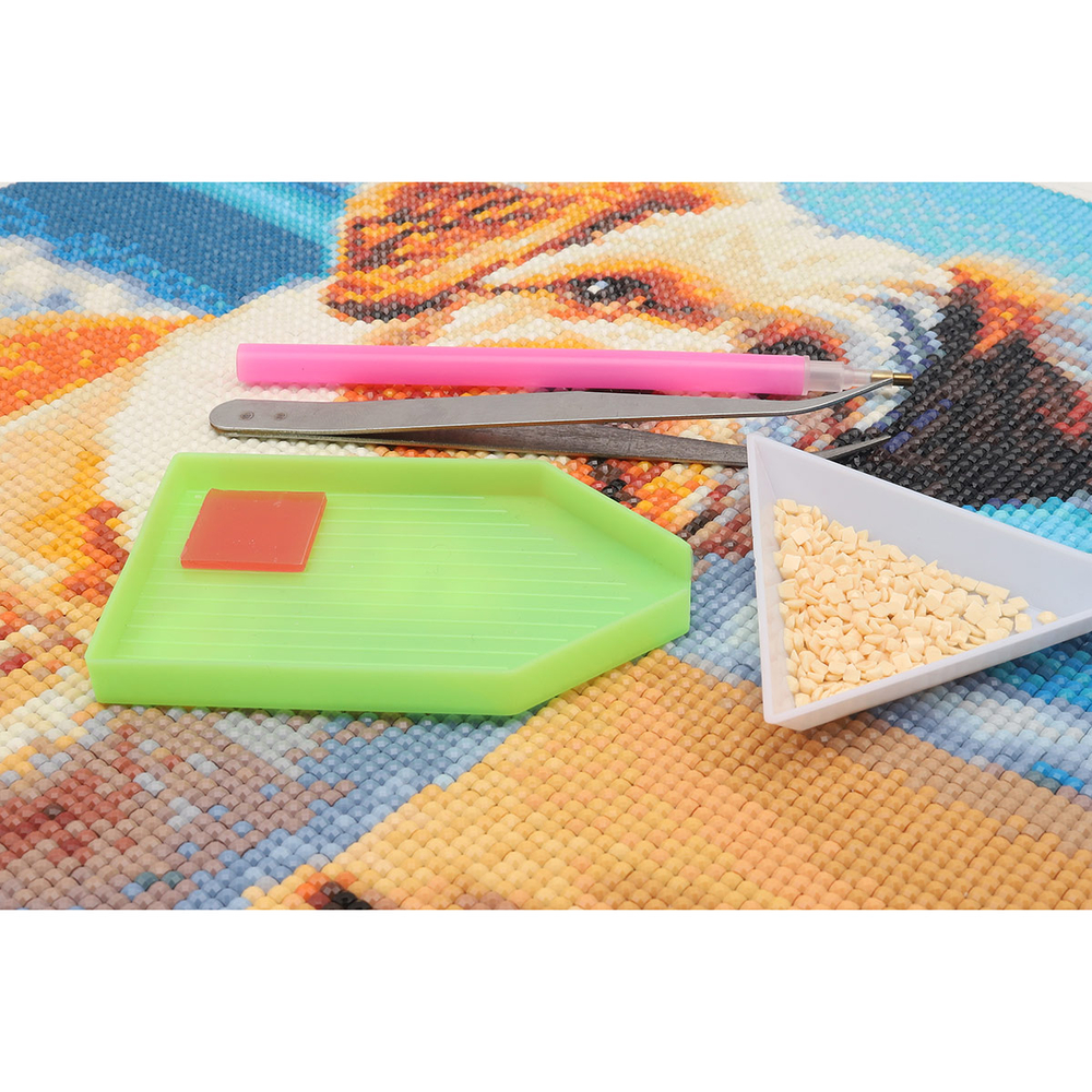 Схема выкладки сделана с учетом палитры DMC, максимально точно передает цвета и детали. Расшифровка схемы находится на холсте: так вы быстрее подберете стразы нужного цвета и легко найдете участок, где они будут располагаться. Клеевой слой надежно удерживает стразы на полотне.