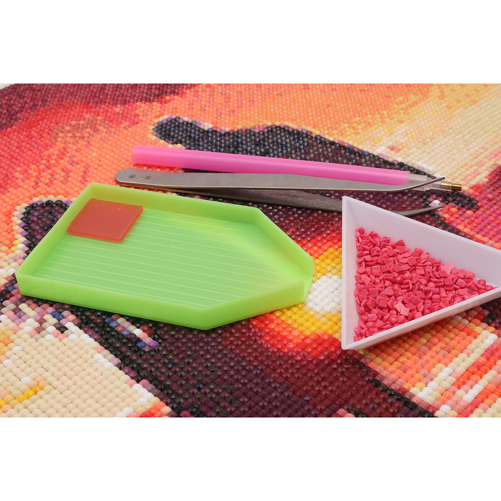 Схема выкладки сделана с учетом палитры DMC, максимально точно передает цвета и детали. Расшифровка схемы находится на холсте: так вы быстрее подберете стразы нужного цвета и легко найдете участок, где они будут располагаться. Клеевой слой надежно удерживает стразы на полотне.