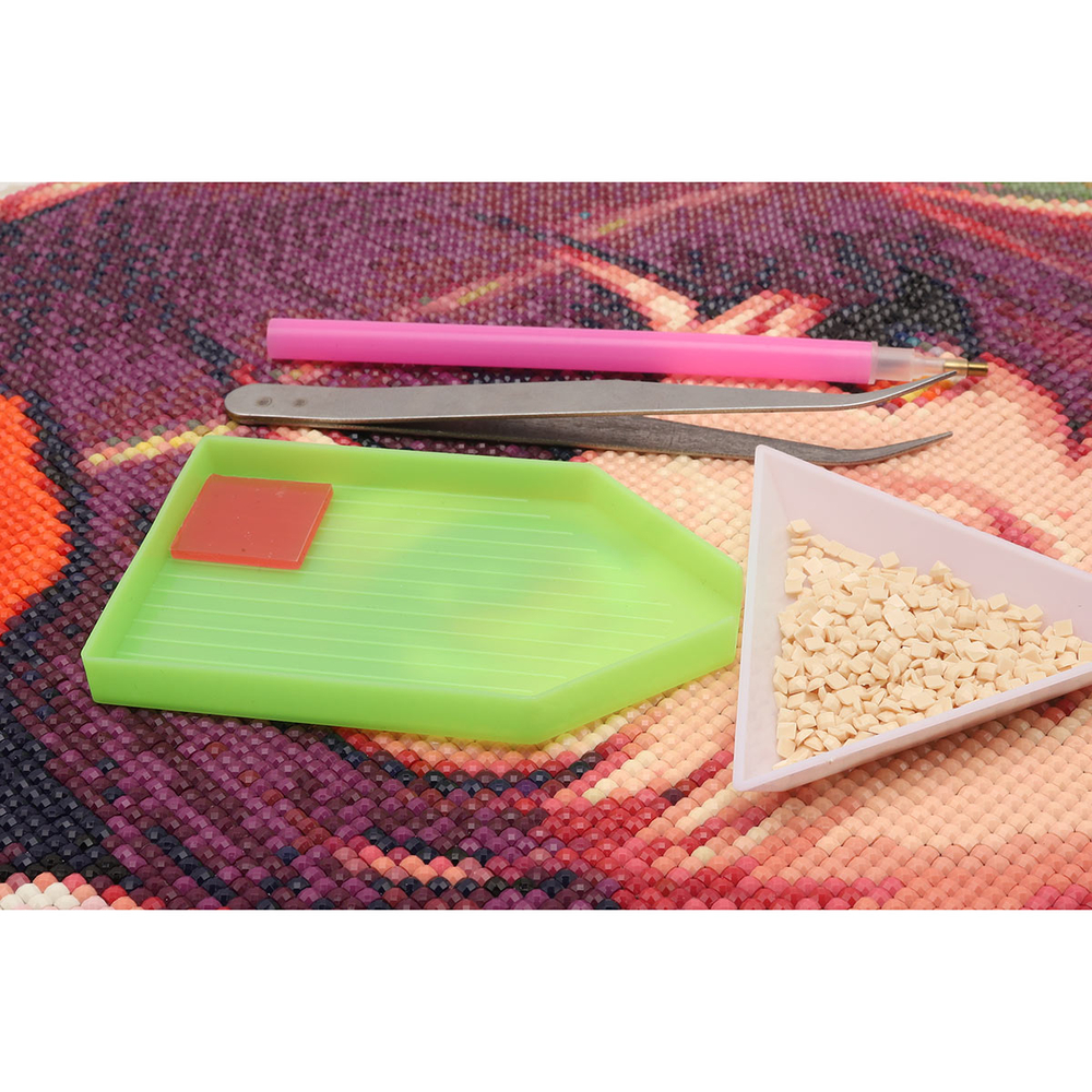 Схема выкладки сделана с учетом палитры DMC, максимально точно передает цвета и детали. Расшифровка схемы находится на холсте: так вы быстрее подберете стразы нужного цвета и легко найдете участок, где они будут располагаться. Клеевой слой надежно удерживает стразы на полотне.