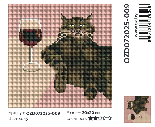 На холст с деревянным подрамником нанесена схема с отметками для выкладки стразов соответствующих цветов, а также нанесен специальный клеевой слой. Необходимо с помощью пластиковой ручки-стилуса захватить определенный страз и перенести на область, отмеченную под выбранный цвет. В наборе имеется все, что нужно для создания шедевра своими руками.