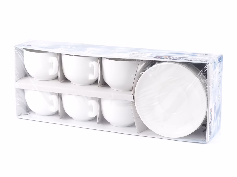 Набор чашек с блюдцами стеклокерамический "Essense White". Объём чашек – 220 мл. Используется для любых напитков. Перед первым использованием помыть.