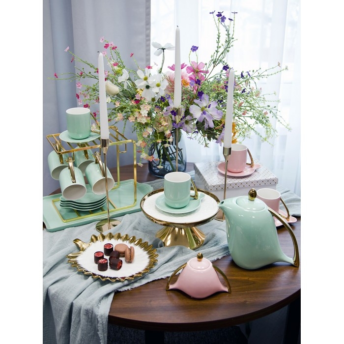 Чайный набор поможет создать теплую уютную атмосферу за столом. Приятный дизайн изделий порадует ваших близких и гостей.