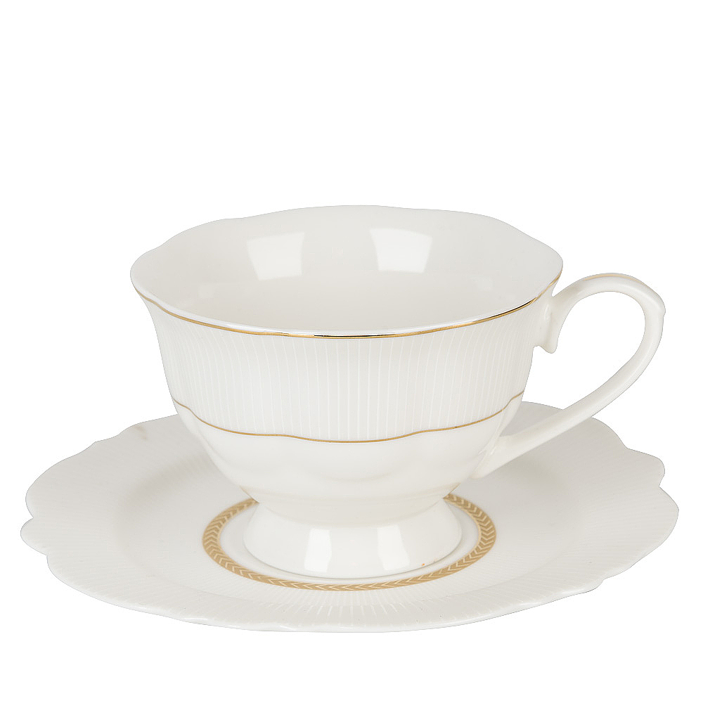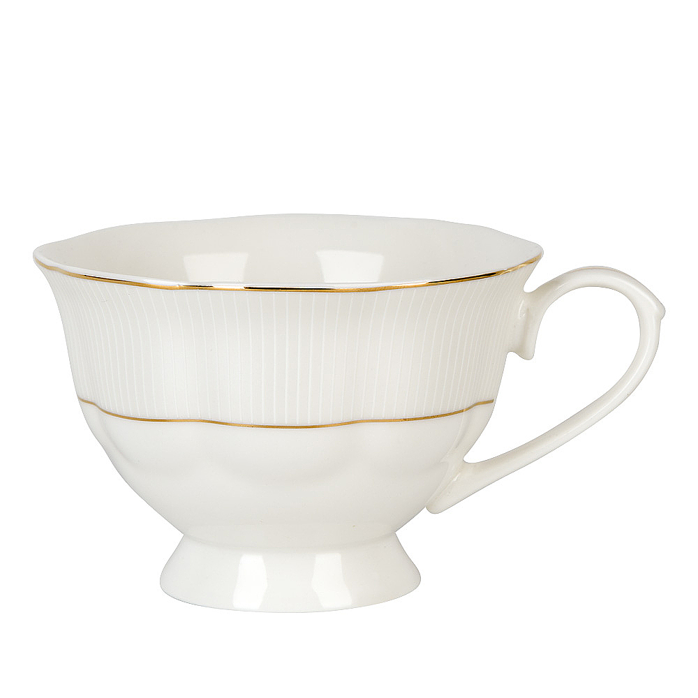 Золотой декор выделяется на фоне белоснежного фарфора, создавая утонченный и изысканный образ. Каждый элемент коллекции "White chic" украшен рельефом в виде полосок, который придает посуде еще больше изящности. Этот нежный и утонченный рельеф создает впечатление деликатной игры света и тени, делая каждый предмет по-настоящему уникальным.