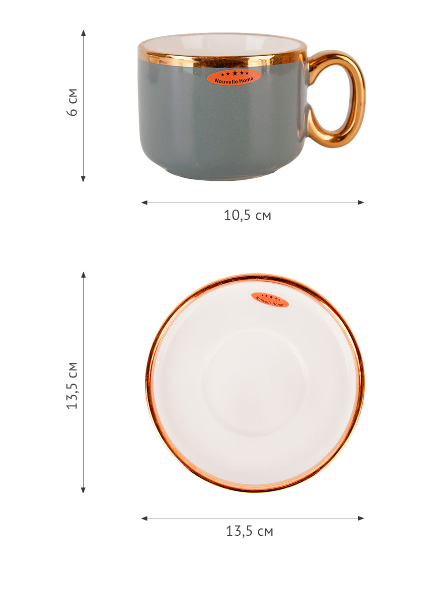 Выполнены изделия из фарфора, и имеют глянцевую текстуру поверхности с золотой окантовкой.
