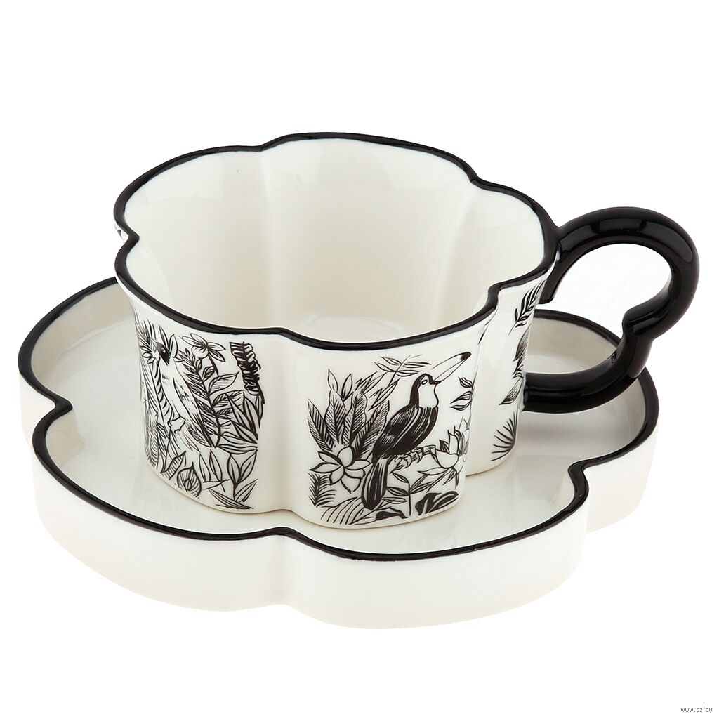 Набор выполнен из высококачественного фарфора. Фарфоровая посуда отличается от керамики повышенной плотностью. Фарфор не впитывает цвет кофе или чая и не деформируется от влаги, чему может быть подвержена керамическая посуда.