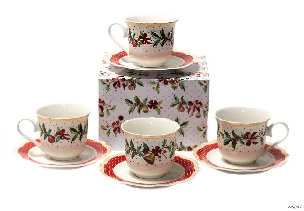 Набор чашек с блюдцами "Новогодний" (8 предметов)