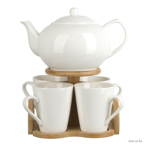 Набор на бамбуковой подставке: чайник (1200 мл) и 4 кружки (300 мл).