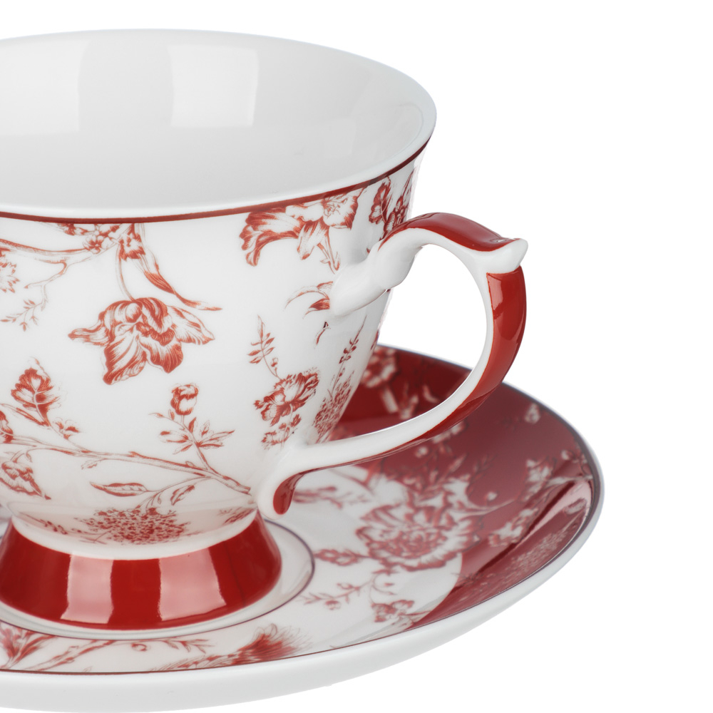 Утонченный дизайн с цветочным орнаментом смотрится лаконично и деликатно, гармонично дополняя сервировку обеденного или праздничного стола. Набор изготовлен из прочного фарфора, который хорошо сохраняет тепло напитков, имеет идеально гладкую глянцевую тактильно приятную поверхность.