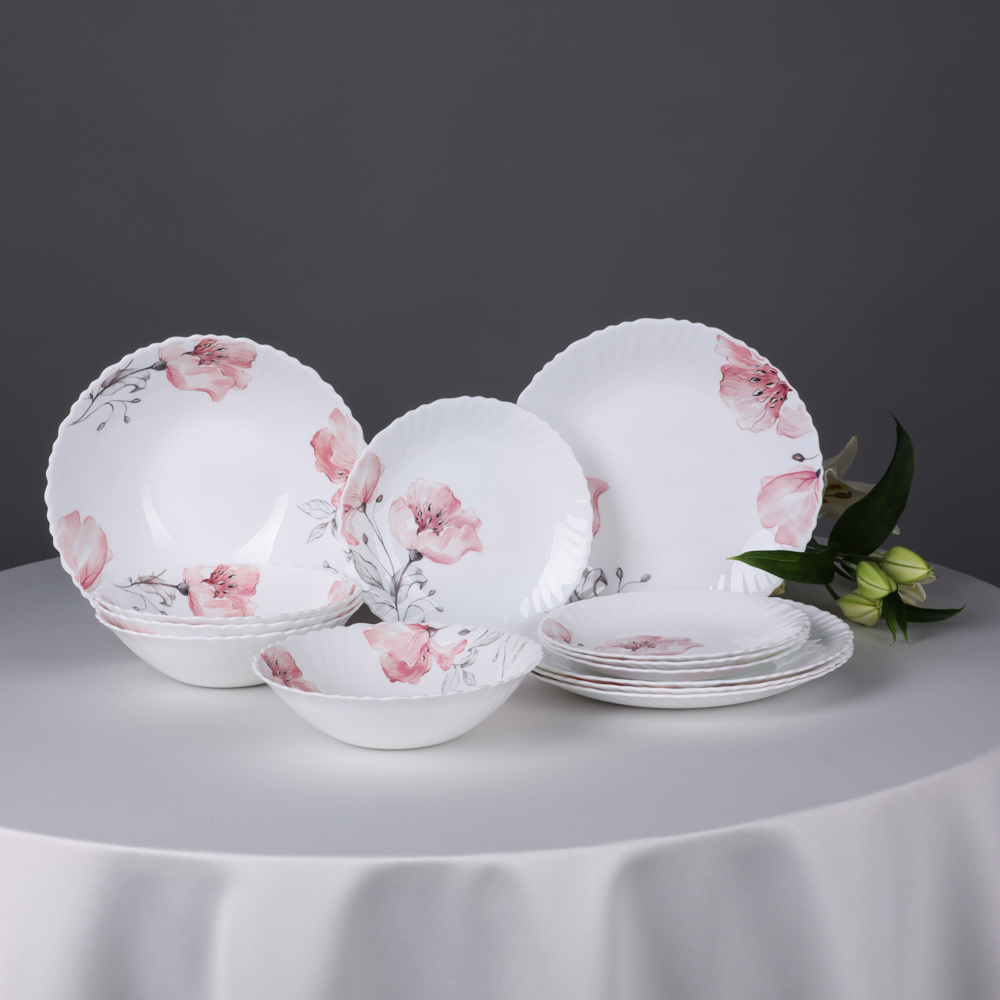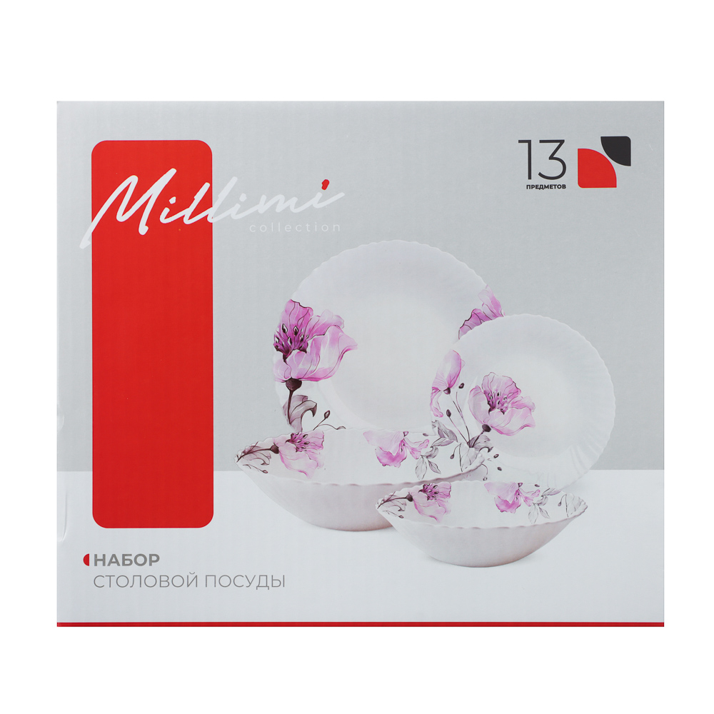 В комплекте 13 предметов из опалового стекла, которые объединяют прочность и изысканный дизайн.
