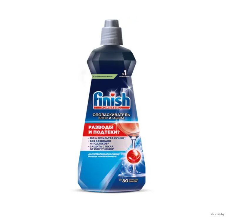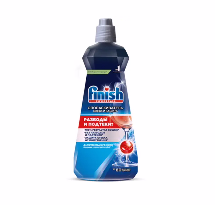 Ополаскиватель Finish обеспечивает более равномерное и быстрое высыхание посуды без подтеков.