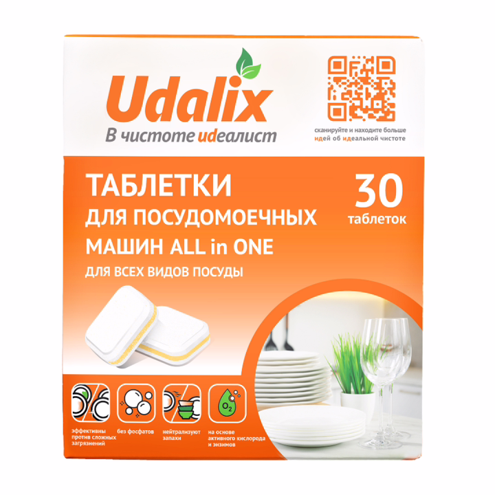 Таблетки для посудомоечных машин Udalix созданы для эффективного удаления загрязнений с различных видов посуды.