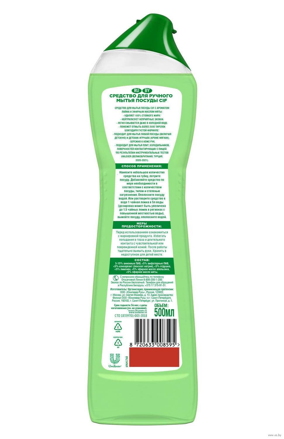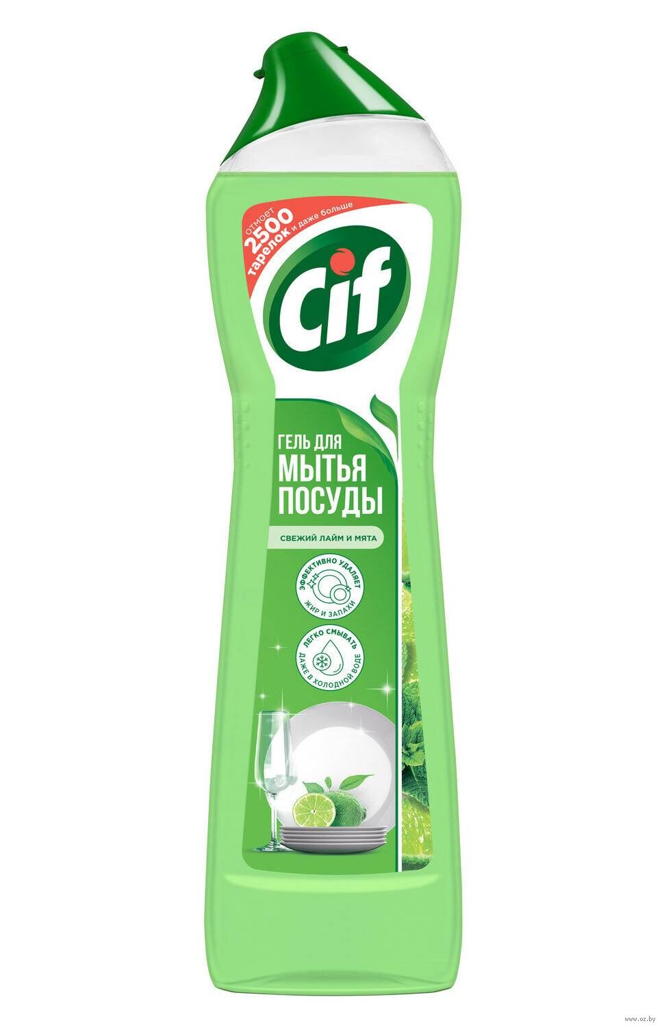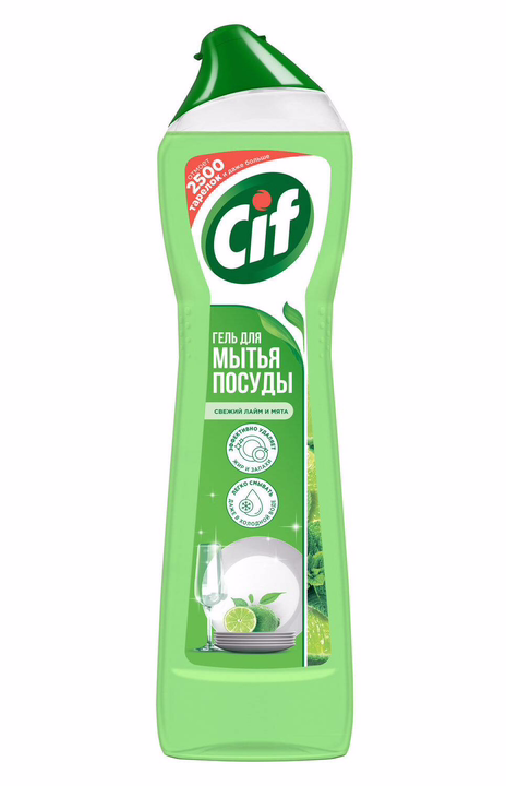 Гель для мытья посуды Cif с ароматом лайма и мяты – это густое, эффективное и экономичное средство, которое поможет отмыть более 2500 тарелок!