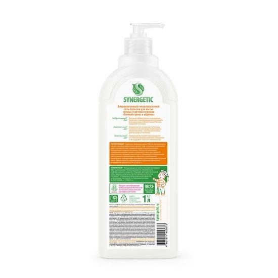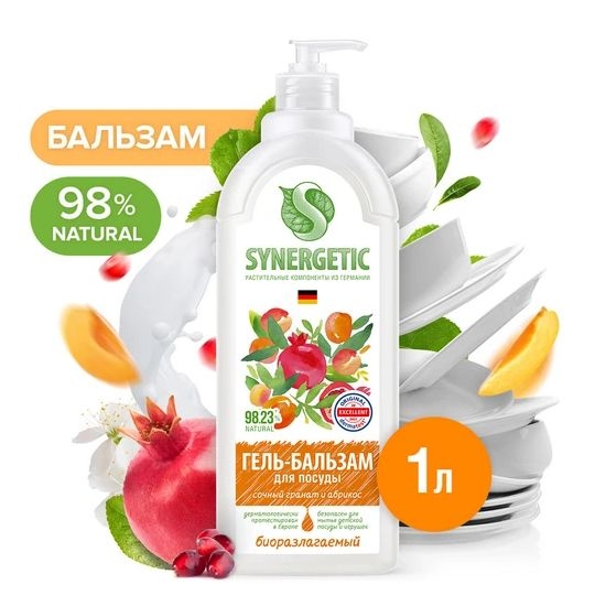 Формула геля-бальзама для посуды Synergetic – это идеальный баланс эффективного моющего средства, пенообразования и бережного отношения к коже.