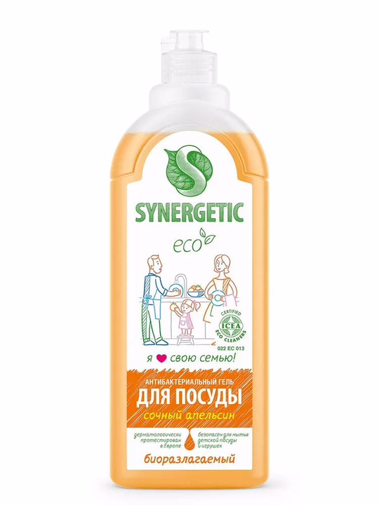 Безопасное средство с ароматом сочного апельсина для мытья детской и взрослой посуды, фруктов и овощей, а также игрушек.