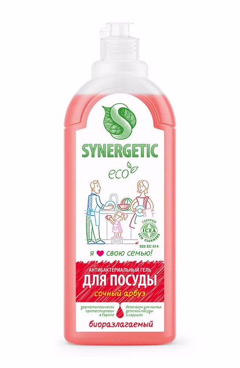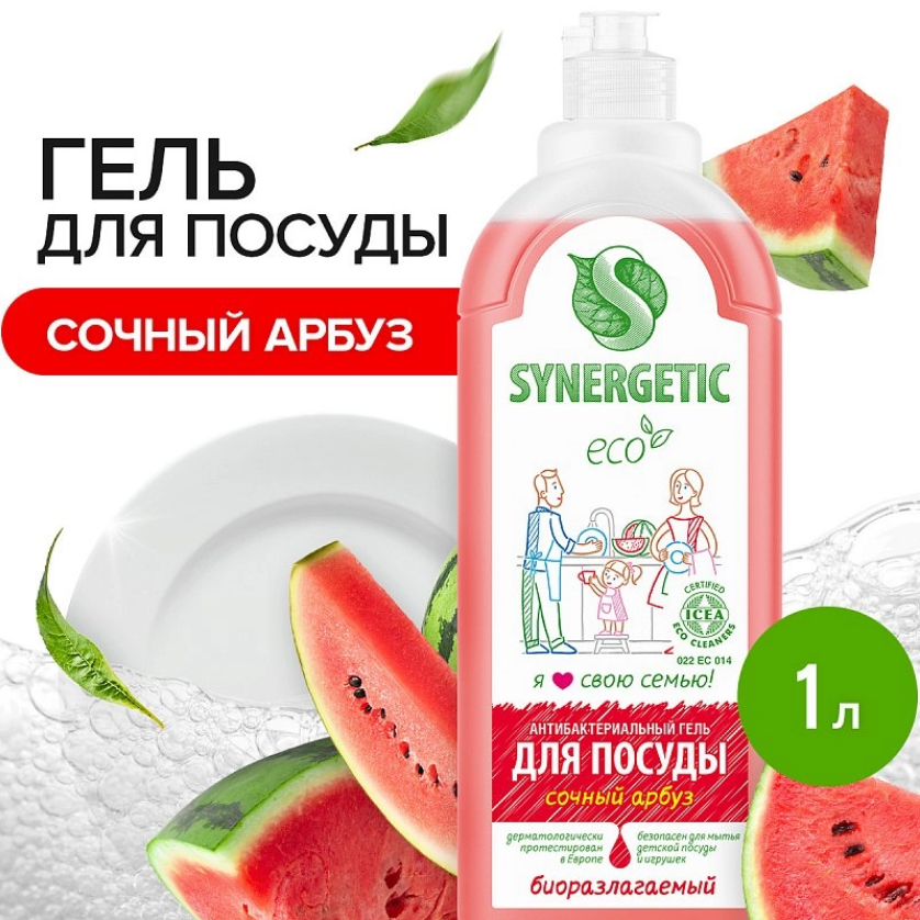 Безопасное средство с ароматом сочного арбуза для мытья посуды, детской и взрослой, фруктов и овощей, а также игрушек, которые дети так любят тянуть в рот.