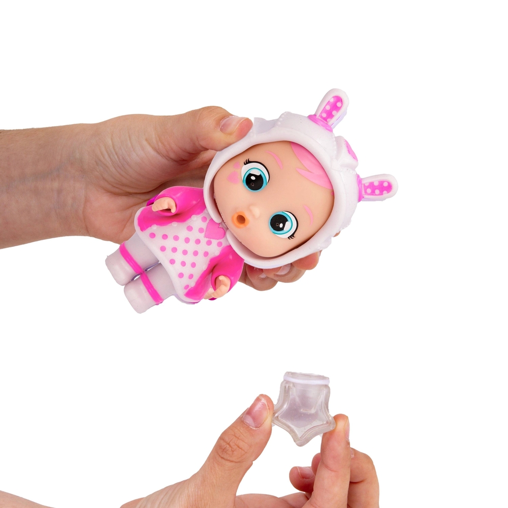 В наборе кукла высотой 13,5 см с подвижными ручками и ножками, домик на колесах и множество модных аксессуаров. Для того чтобы слезы вытекали из глаз при нажатии на голову, необходимо залить воду в специальный отсек на голове и вынуть пустышку.